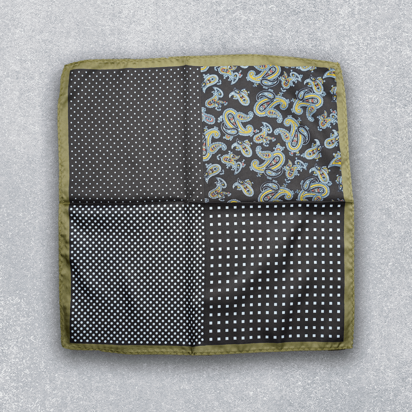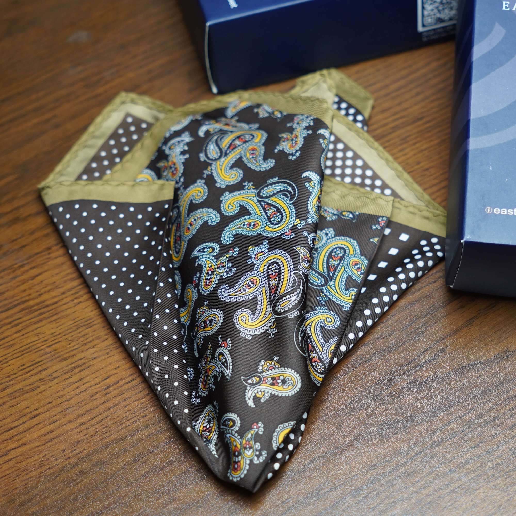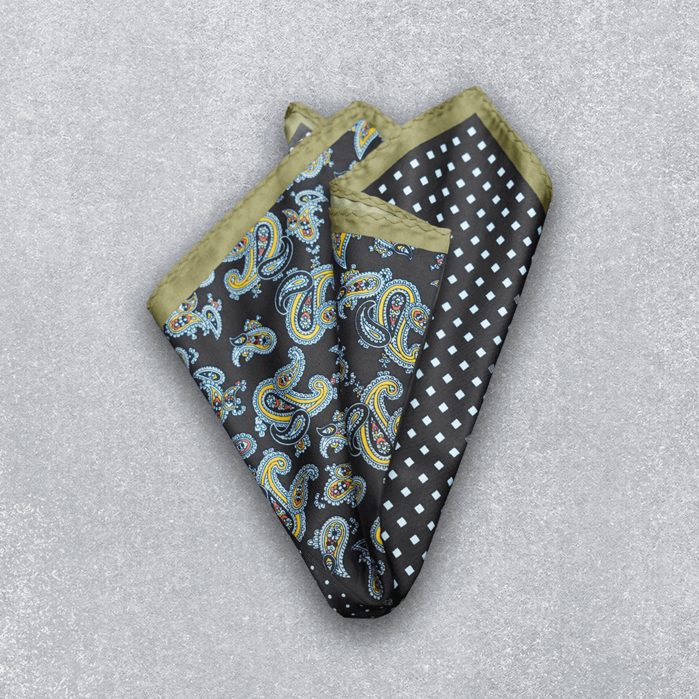 Introducing our exquisite Cedar Mixed Paisley and Polka Dots Satin handkerchief also know as Pocket Square, meticulously crafted to enhance your formal ensemble. With a generous width of 13 inches (33cm), this handkerchief exudes timeless elegance, making it the perfect accessory for weddings, proms, parties, and any other grand occasion. Moreover, what sets this handkerchief apart is its unique feature – expert printing on both sides, ensuring a refined look from every angle. The satin fabric delicately showcases a subtle opulence, elevating your style to new heights. Furthermore, its luxurious feel and attention to detail in craftsmanship and premium materials guarantee durability, making it a reliable companion for numerous memorable occasions.