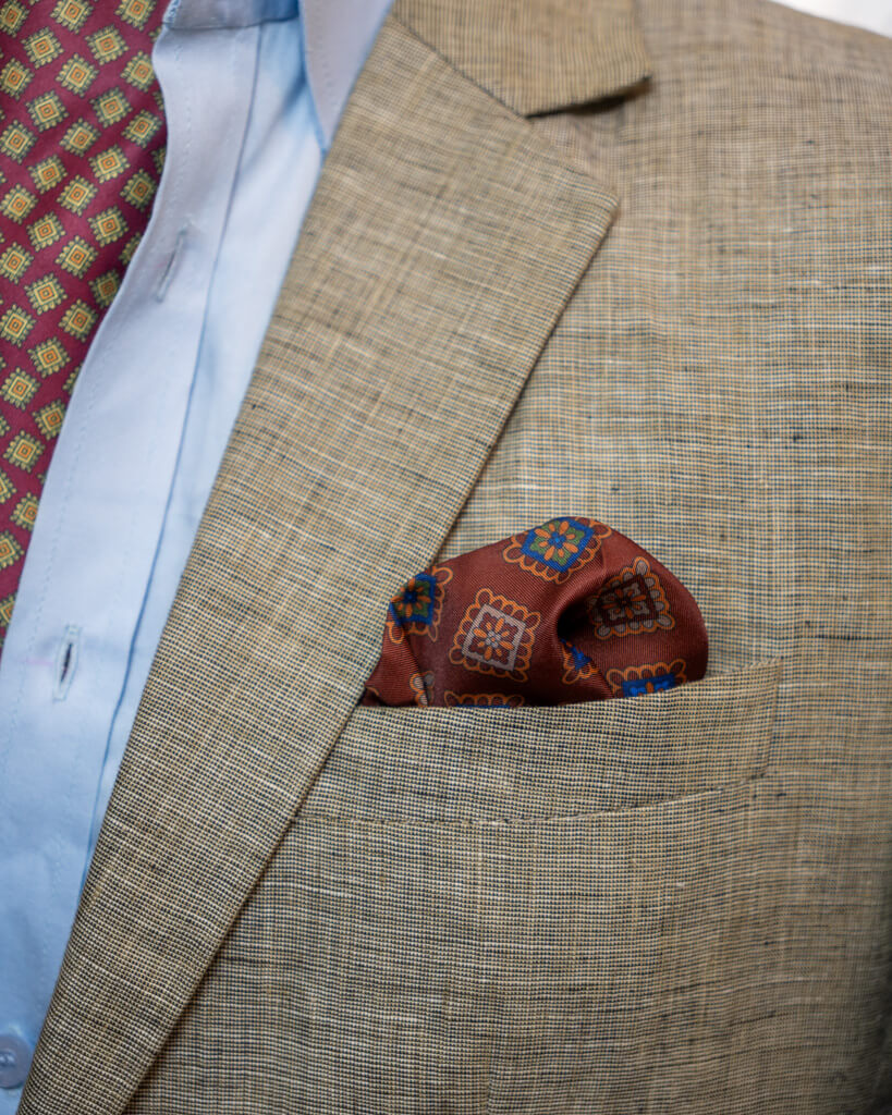 Crafted with exceptional care, this satin pocket square offers a luxurious feel and impeccable finish. Durable, smooth, and beautifully detailed, Copper Diamond becomes a versatile staple in your formal collection—perfect for events where refinement matters most.