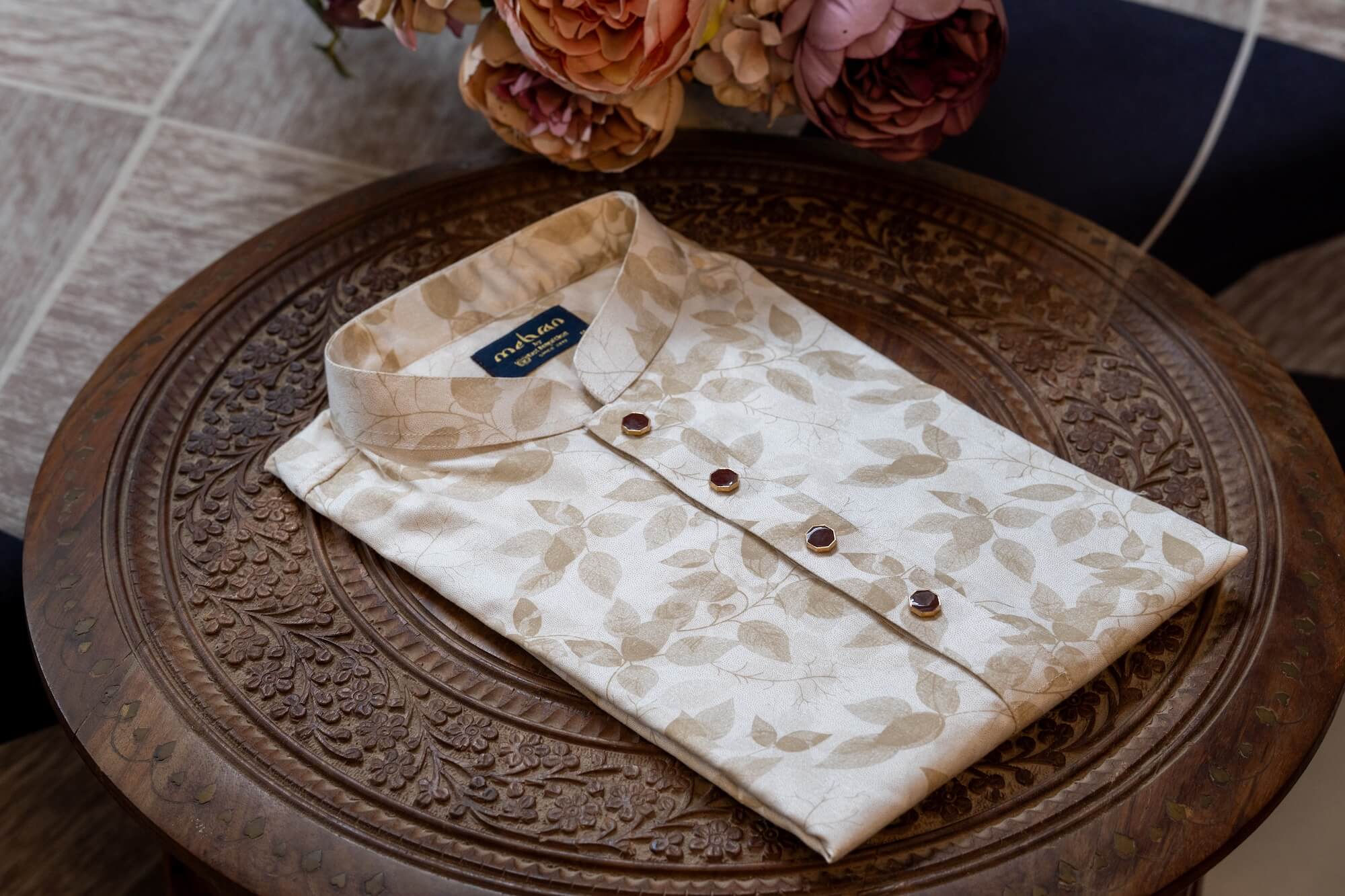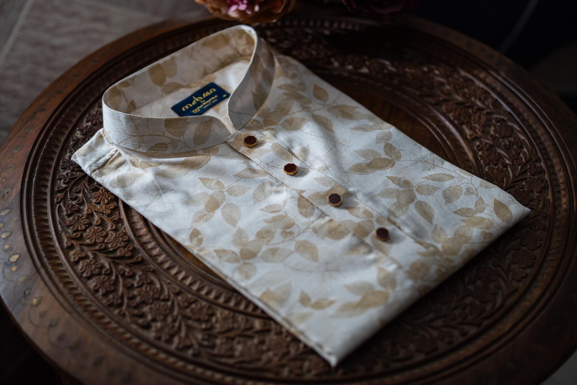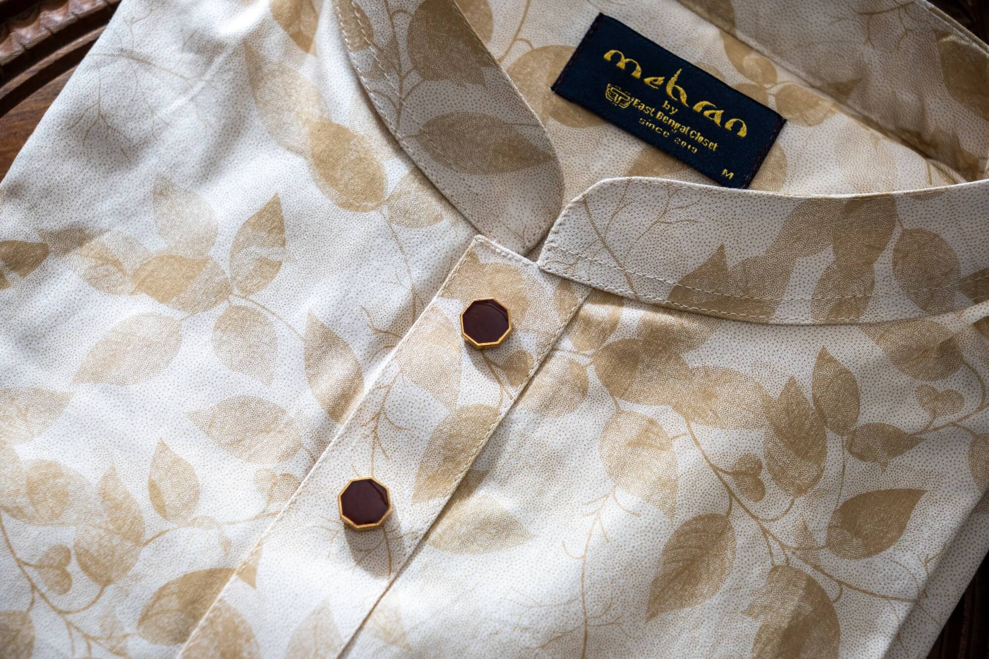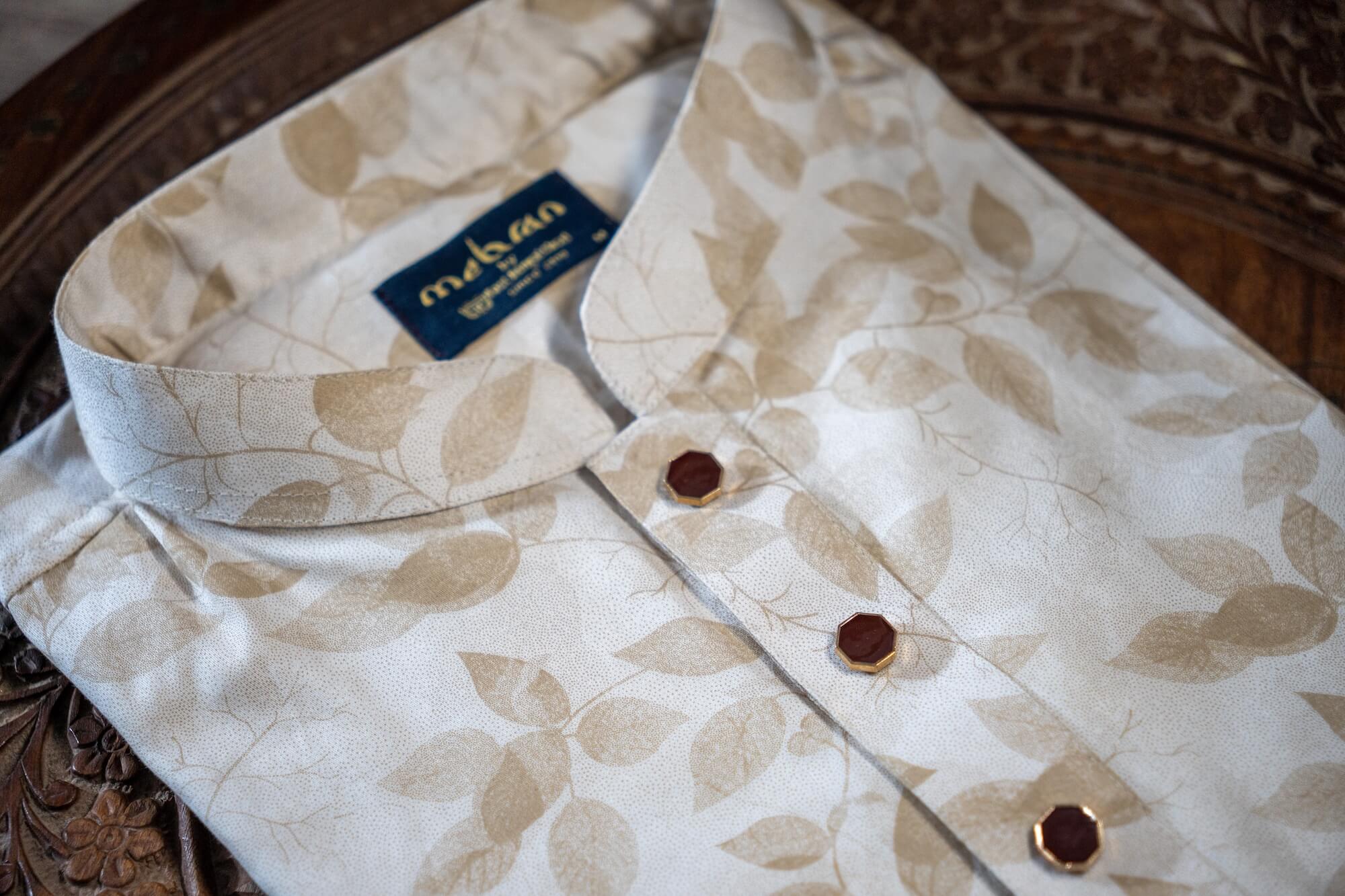 - Classic band collar for a traditional yet modern look