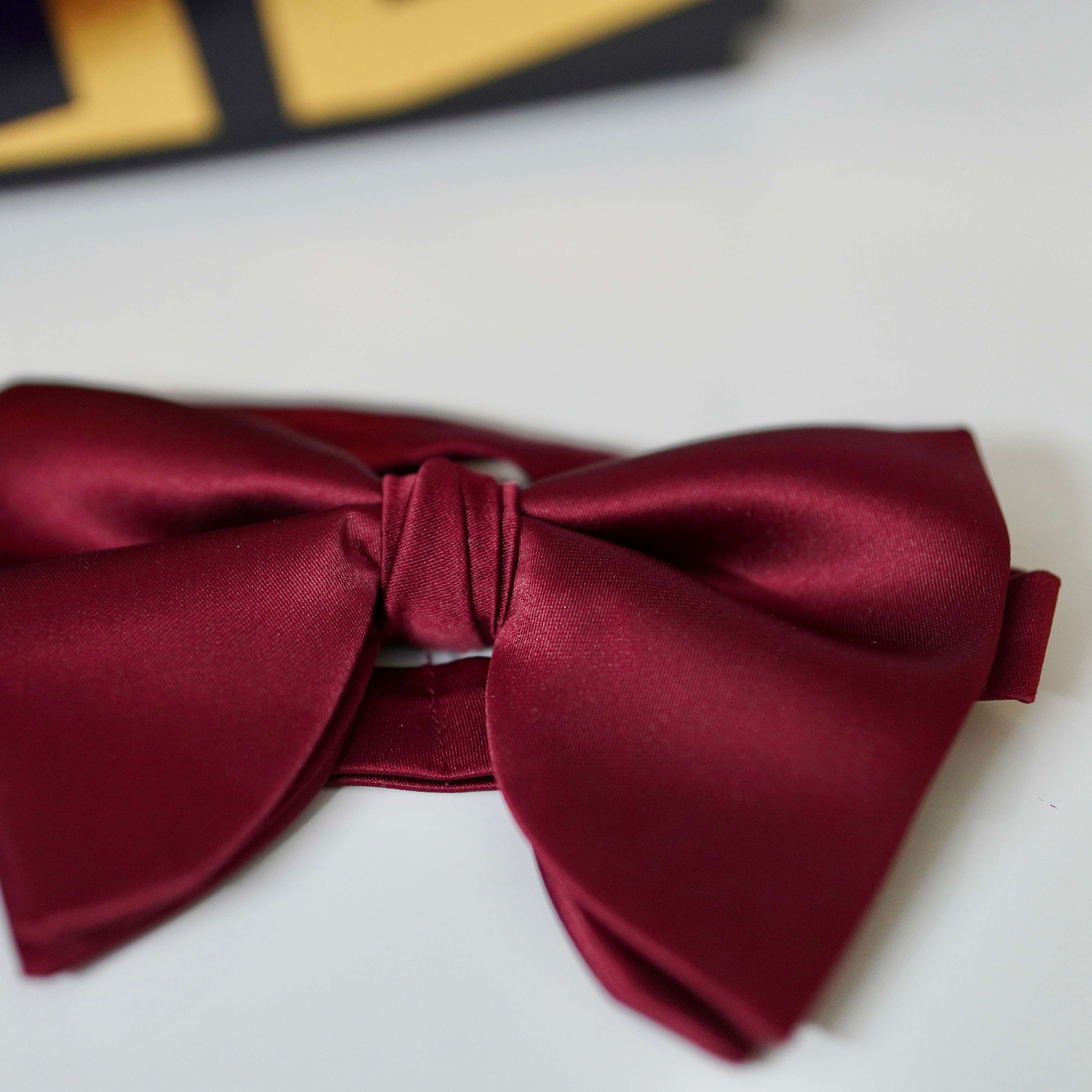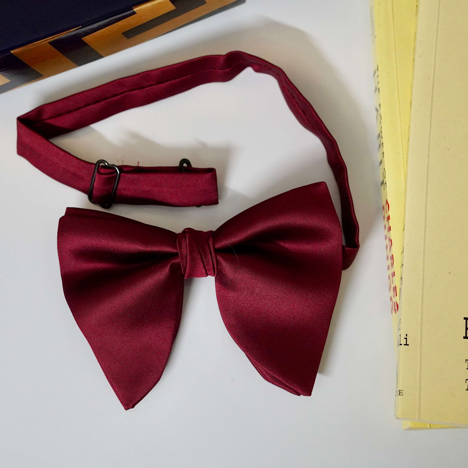Our Maroon Polyester Butterfly Bow Tie boasts a rich, deep maroon hue that adds a touch of regal charm to your ensemble. The polyester fabric not only looks luxurious but also ensures durability and easy maintenance, making it perfect for regular use or special occasions.