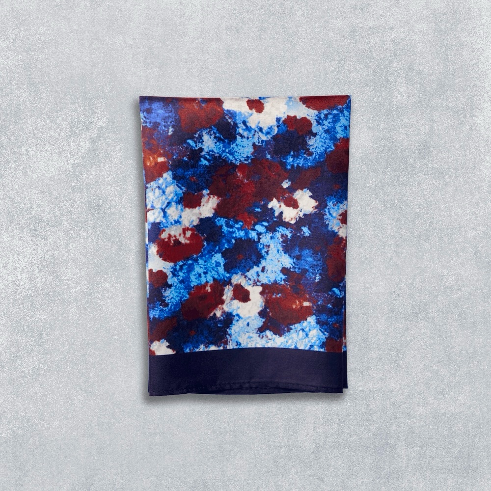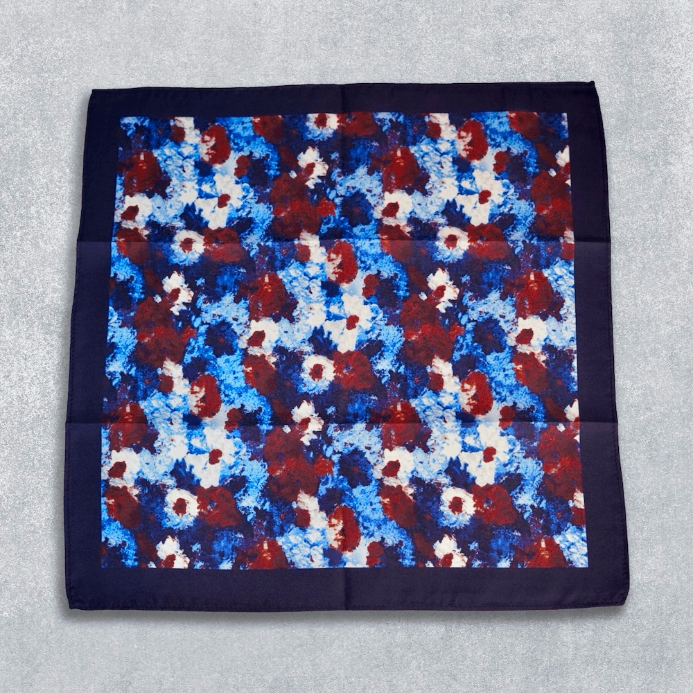 Our premium classic silk pocket squares ‘Scarlet Azure’ pattern showcase unparalleled craftsmanship, where every intricate detail is carefully attended to. Skilled artisans, well-versed in the art of luxury, meticulously select the finest silk and employ their expertise in delicate stitching and impeccable finishing. At EBC, we take immense pride in delivering products that exude excellence, catering to the refined tastes of our esteemed customers.