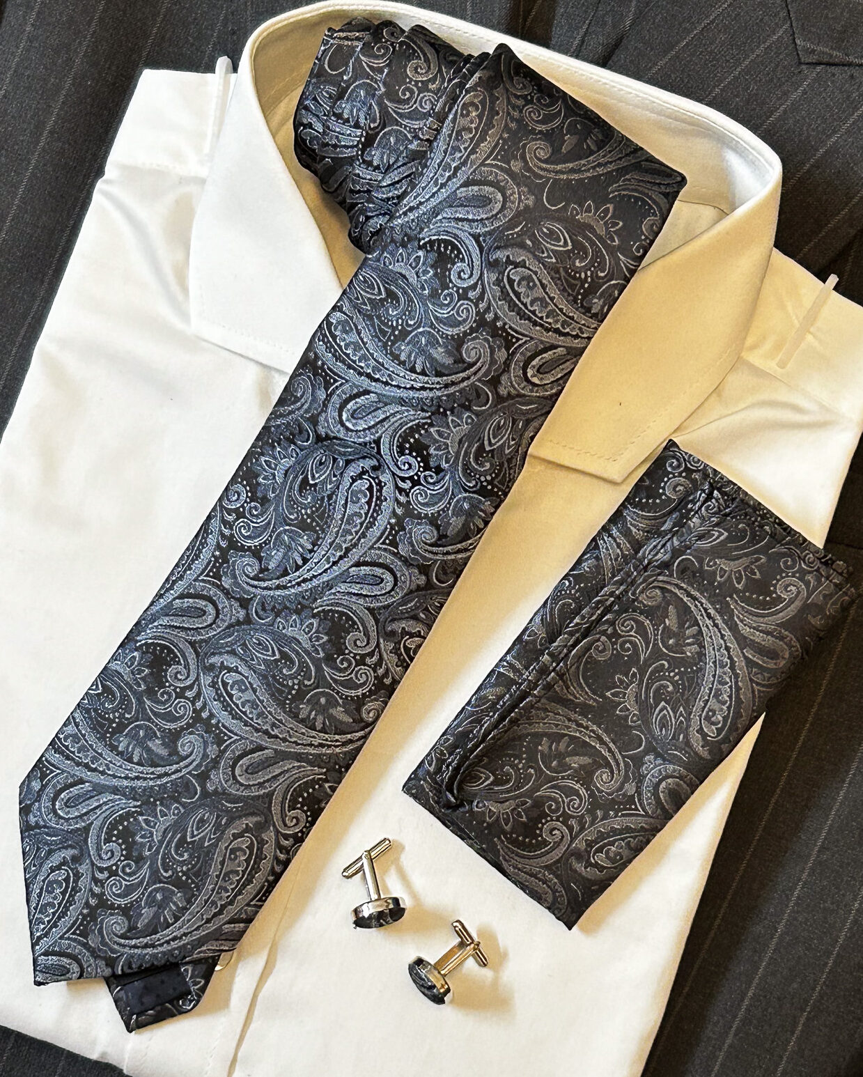 Comes with a 9″x9″ matching pocket Square and a pair of matching cufflinks