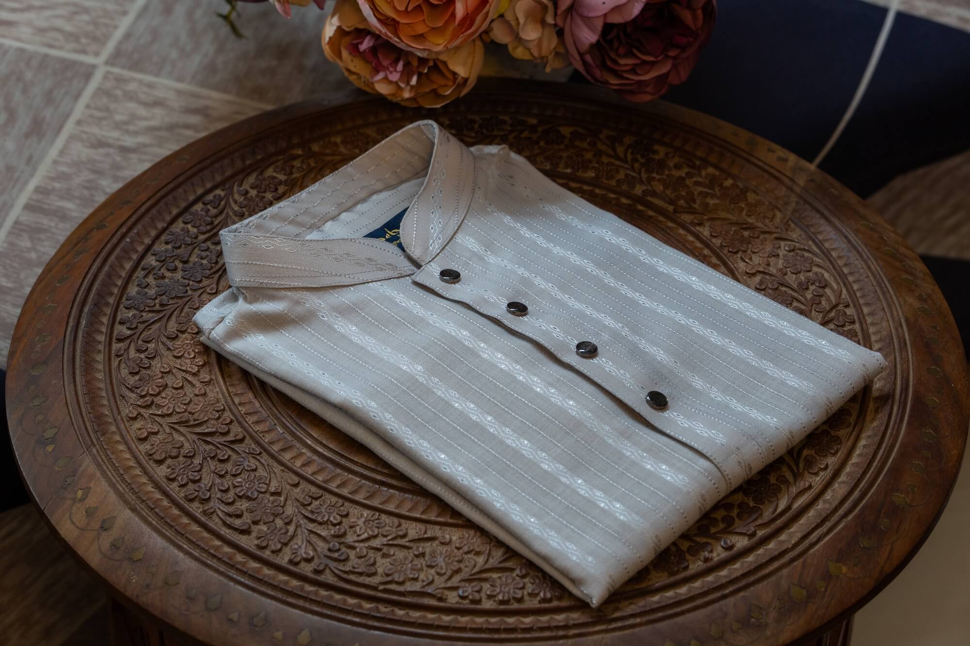 - Subtle woven texture with intricate detailing